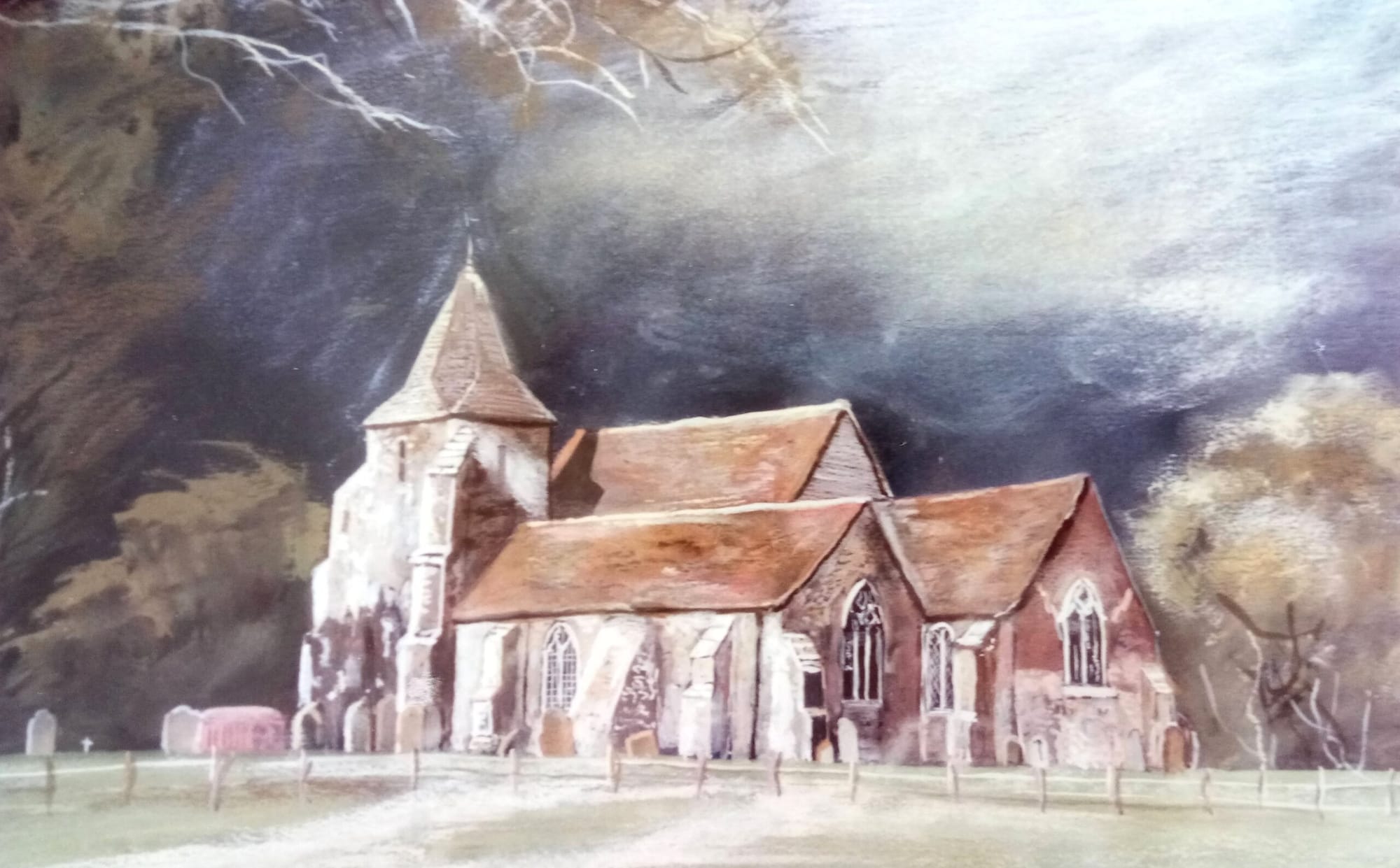 MANDY SKINNER’s ‘New Romney Church’ in gouache on dark paper