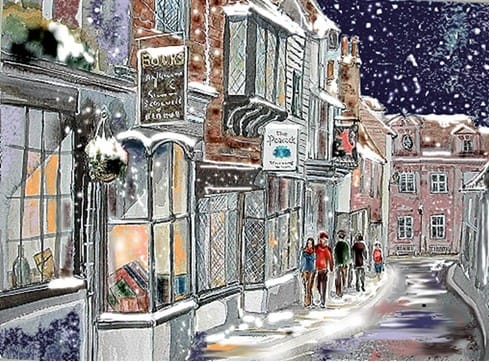 In making their selection, John told me they were keen to opt for designs with a sense of Rye as a place, had a Christmas atmosphere, were colourful, bright and cheerful, possibly humorous and one chosen for a bit of blatant self-publicity! And why not? A kind of personalised card after all.