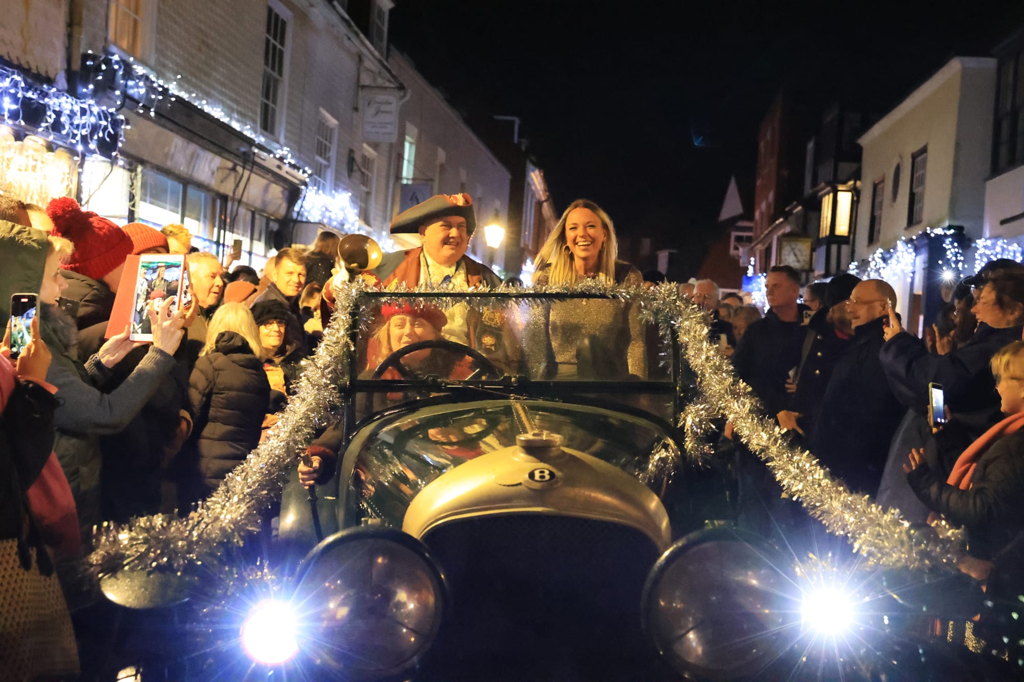 Vicky from Simply Rye explains how the evening will unfold: “It will begin outside the George Hotel with the Marsh Choir singing festive songs from 4:45pm before a big switch on of the Christmas tree lights at 5pm with our brilliant local ‘special guest’ Peter Duncan (Blue Peter presenter and actor) and deputy town crier Arabella!