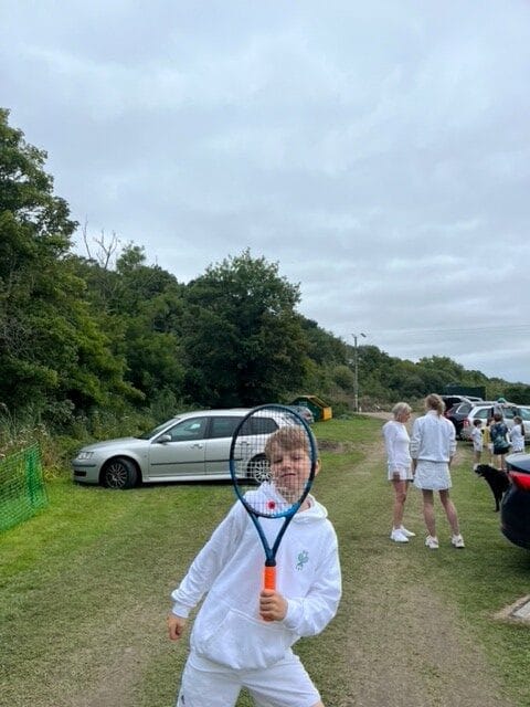 Jonny Leslie and his grandson Luke Pakenham won the senior court for the second time running, but it was not all plain sailing. Packenham’s sizzling serves drew gasps from the crowds as they whizzed over, past and occasionally through the terrified returners. The junior section this year was formidable and there was great potential on show. There were lots of spectacular rallies, as mums, dads, aunts and uncles dashed around like headless chickens, determined not to let their charges down! The courts rang out all day with shouts of ‘Go mum!’ and ‘Ohhhh, dad!’