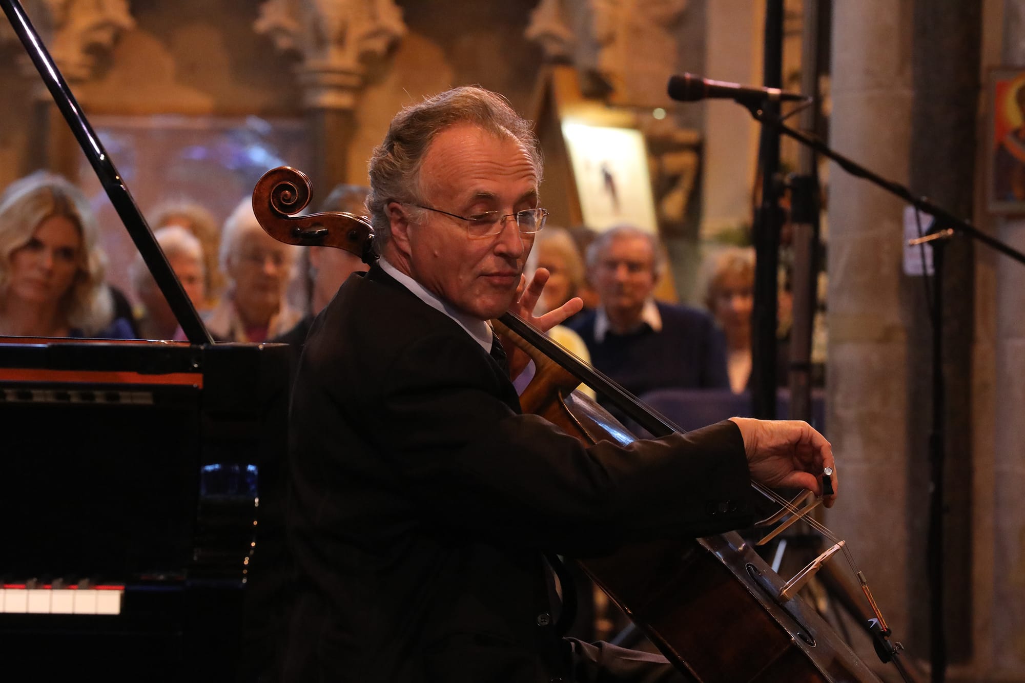 On Sunday afternoon, Ann welcomed the internationally celebrated cellist, Raphael Wallfisch and the pianist John York to perform a carefully chosen programme of music by Beethoven, Bloch, Messaien and two famous composers born in Ukraine, Prokofiev and Glière.