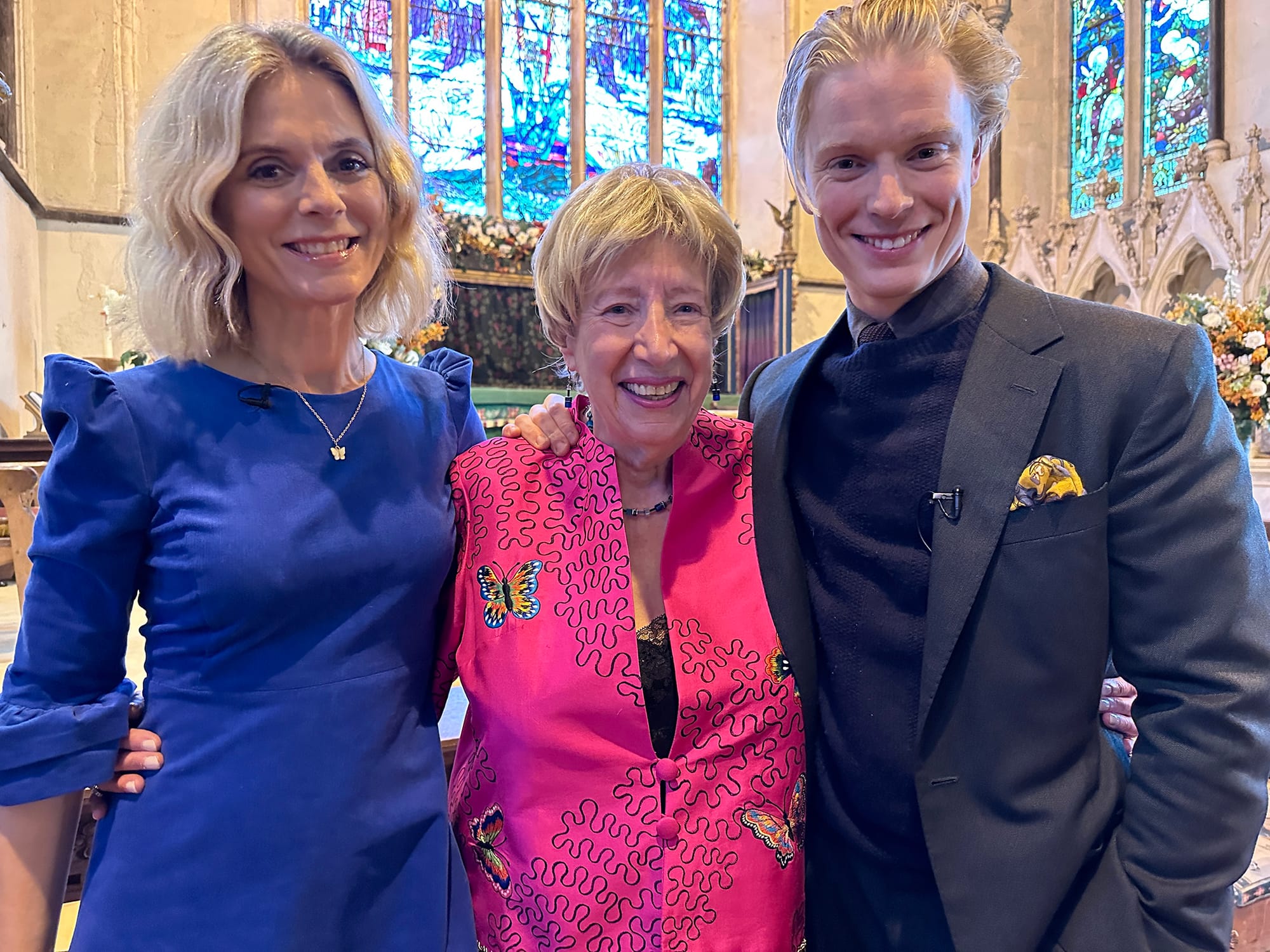 But Ann knew that she needed to have words to add essential spoken meaning to help the audience fully understand why they were there and what being Ukrainian at this tragic time in their country, is really like. She researched and found wonderful poems, written in the 19th century by Ukrainian’s foremost poets Taras Levchenko and Lesya Ukrainka. Coupled with two commissioned poems by local poet Harvey Gillman and Resistance by Simon Armitage, our Poet Laureate, these words were gently interspersed between the music, magically performed by Emilia Fox and Freddie Fox, superb actors of today. Young and beautiful, they added a glow to the concert. They had both been star pupils of Ann’s famous Fun with Music sessions in London where they started aged three and then, finishing the course of three years, they and their parents Edward Fox and Joanna David Fox, remained friends over the decades. The reunion on Sunday was a delight to witness.
