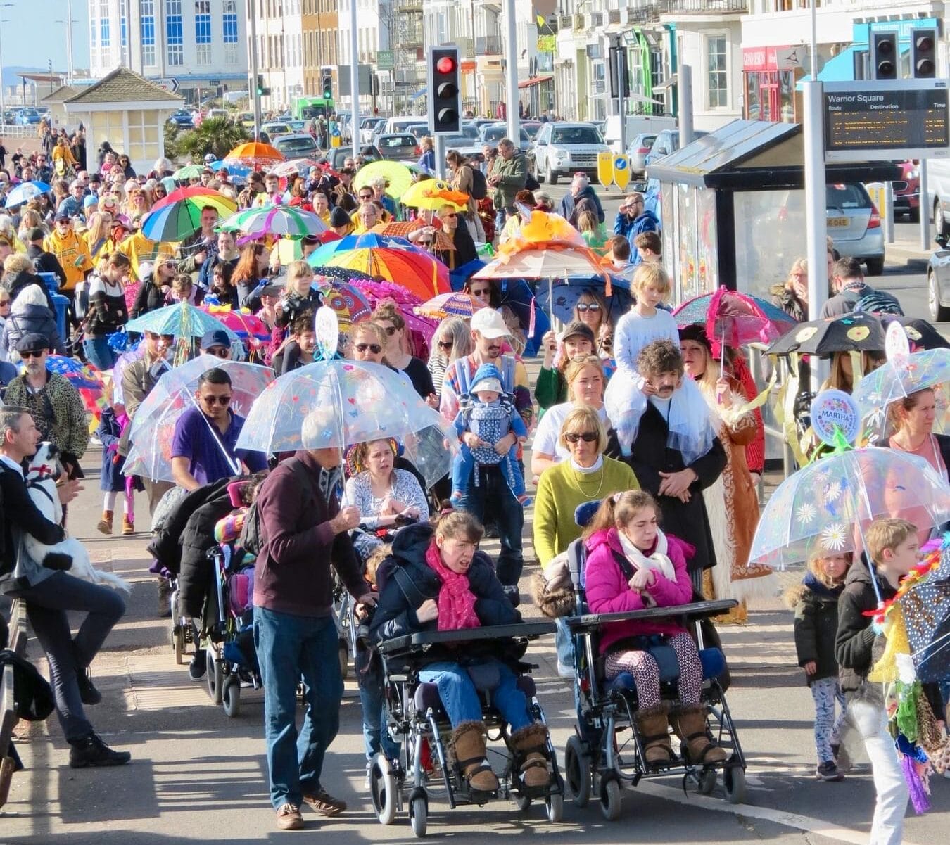 Sally Lampitt, Hastings Fat Tuesday CIC managing director said: “A firm favourite of Hastings Fat Tuesday is the umbrella parade. On Sunday, February 19 the streets of Hastings were teeming with colour, live music, dancers, and festival-goers of all ages. The day culminated in a free family-friendly preservation party for all. Families decorated their brollies in advance at a number of free workshops held across the town and in five primary schools in Bexhill, Hastings and St Leonards.