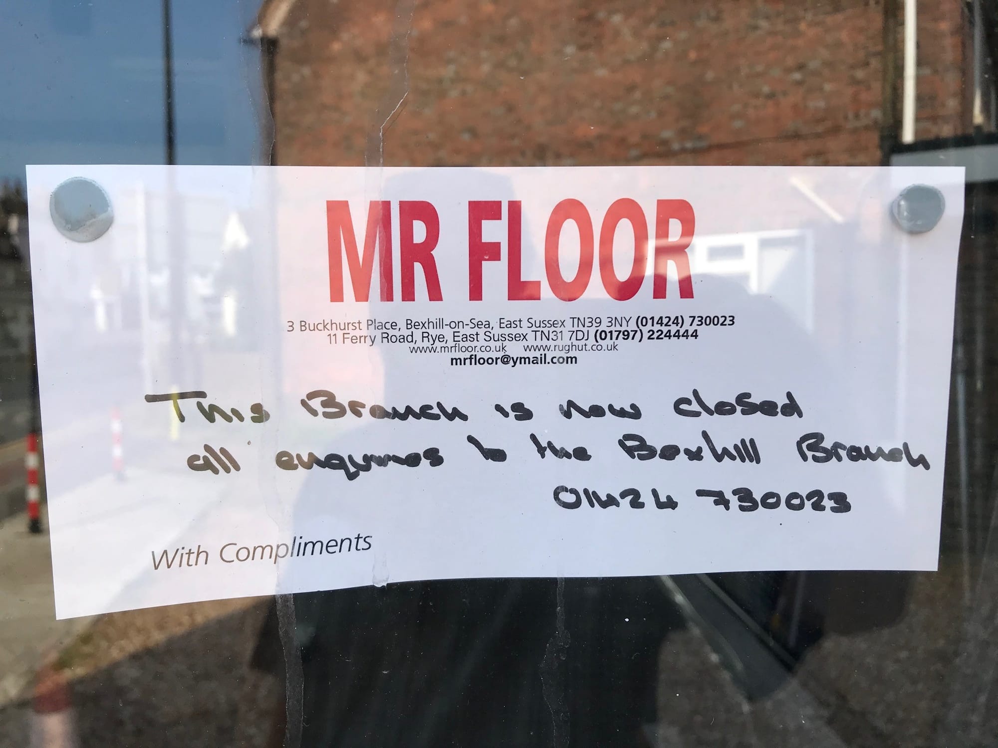 A sign on the door confirms the business has closed and directs all enquiries to Mr Floor in Bexhill whom I contacted and they confirmed the business has closed due to retirement.