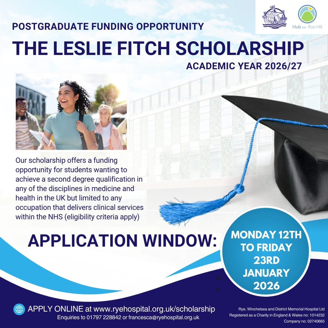 Full details will be available on the charity’s website in the New Year at https://ryehospital.org.uk/scholarship/ and any enquiries should be directed to Francesca Clent at francesca@ryehospital.org.uk or on 01797 228842.