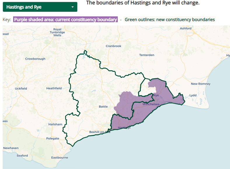 The local electoral boundaries have had some minor changes since 2019. Electors in Udimore and Brede are now part of the Bexhill and Battle constituency, whilst Peasmarsh is now part of Hastings and Rye. There are no changes in Rye, Winchelsea, Camber, Iden and Pett.