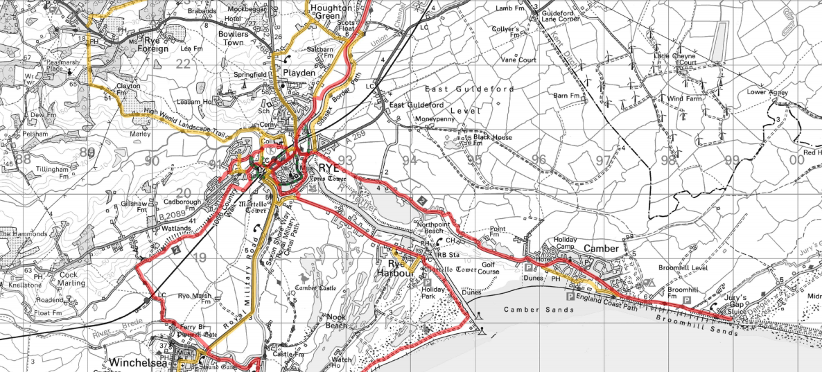 What the plan does not contain is a proposal to join up the long distance footpaths that converge on Rye, such as the 1066 Country Walk; High Weald Landscape Trail; Saxon Shore Way; Royal Military Canal Path and Sussex Border Path, as well as the other paths and rights of way in and around Rye. While their strategy gives a nod to encouraging more people to walk as a form of exercise the plan clarifies that "the scope of the work was limited to utility trips to work, education and shopping of up to 5km. It does