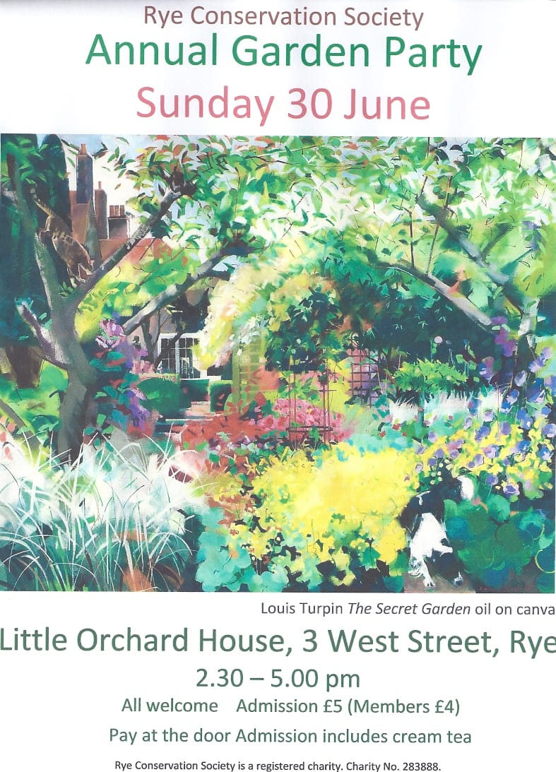 One of central Rye's largest private gardens will open on Sunday June 30. Little Orchard House in West Street, Rye will host the Rye Conservation Society Annual Garden Party.