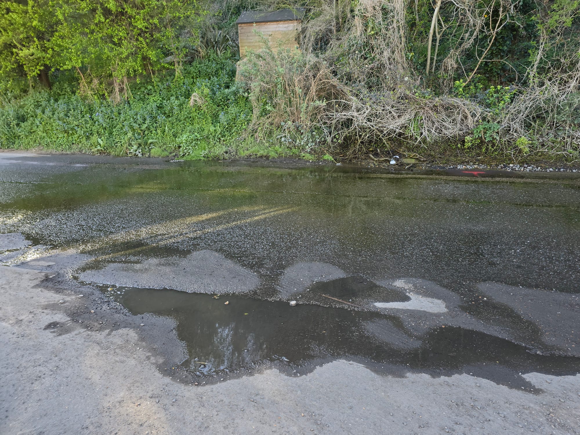 However, from local examinations it is already clear that the drains on the north side of Military Road do not collect the large amounts of water spilling from the escarpment onto the edge of the road. There is no road side gully to collect any surface water and feed it into the drainage system. Recent images show multiple flows across the road surface which can cause a driving hazard and be an irritation to residents.