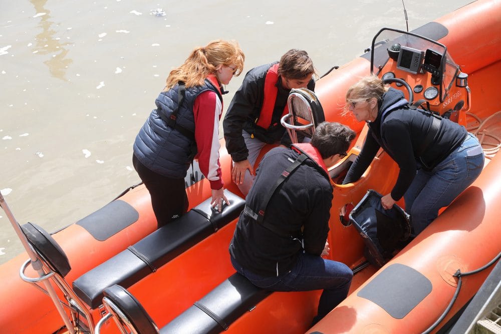 She set out on Saturday July 28 from Rye Harbour with three candidates, including a 13-year-old girl, who were taking the RYA Level 2 course, in a 6 metre Humber RIB (rigid inflatable boat). Before they launched, Sharon carried out all the safety checks needed and showed them all the boat’s key parts. This was day one of the two-day course.
