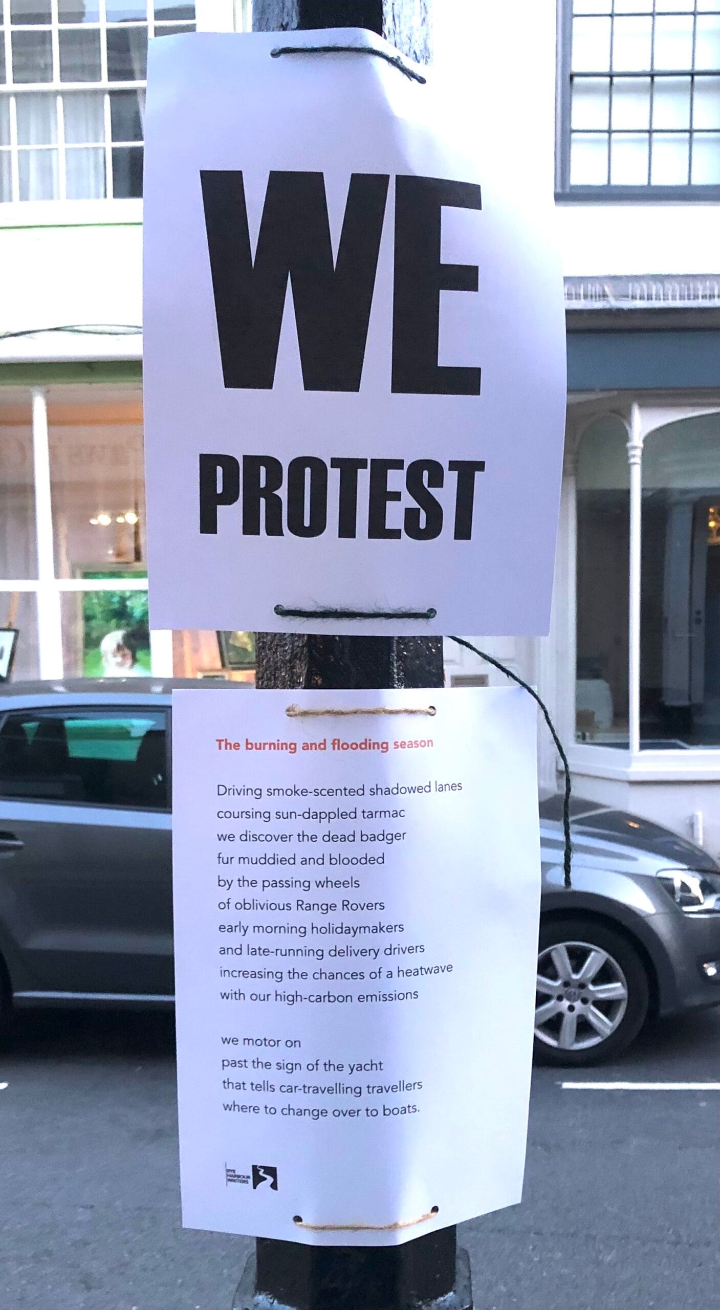 The poems were posted in prominent public places around Rye on a weekend which coincided with the opening of the annual Rye Arts Festival when the town hosts many visitors from near and far.