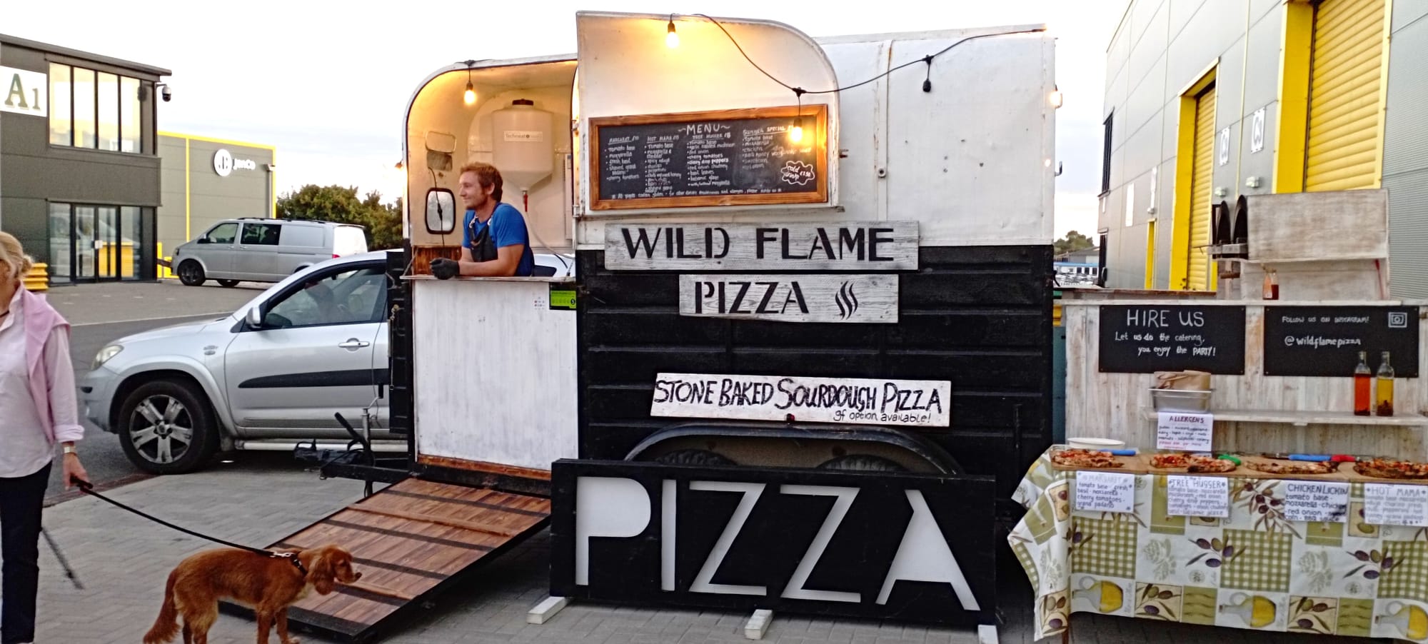 Our next stop was for Prosecco, beer and refreshments, thanks to the generosity of Jo and Jason from Ethel Loves Me. Their makers space unit was an ideal ’pop up bar’ and there we all enjoyed a seemingly never-ending supply of freshly made savoury and sweet pizzas by Tristan from Wild Flame Pizza whilst listening to an inspiring talk by guest speaker Emily Van Eyssen.