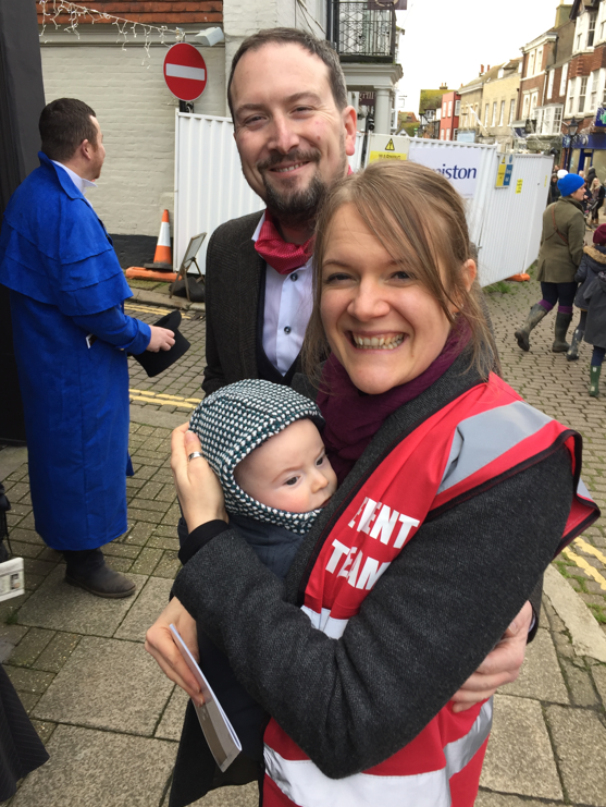 The photo below captures the essence of the festival for us. It shows Haley Ford and her family. Haley was part of the organizing team for previous festivals and helped me navigate the mysteries of international fund transfers so we could contribute financially to the festival. We were stunned to learn that she and her husband Andrew, ran two clothing shops on the High Street. They welcomed a new baby just weeks before the 2019 festival and still committed to volunteering with the production and co-ordination of the day’s events. Look at those smiles! This photo radiates the warmth that we encountered in every shop and pub. What a special place Rye is.
