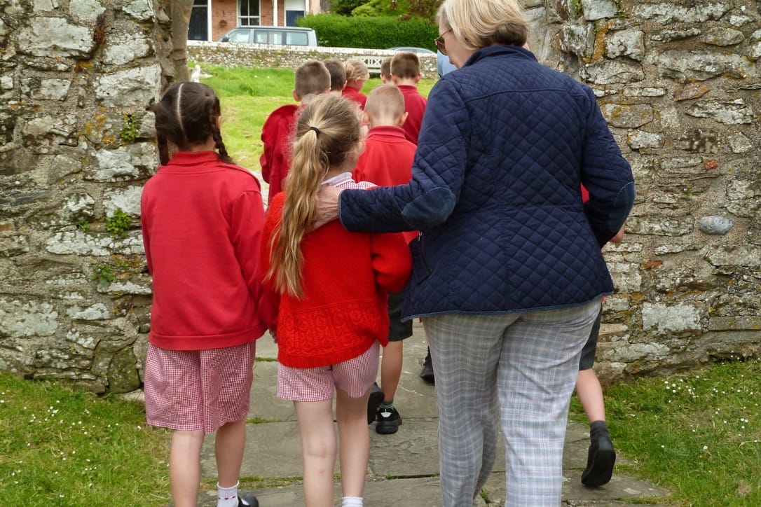 A morning in the fresh air out of the school classroom? Of course, the children from the local primary school skipped into the Churchyard of St Thomas, Winchelsea, in a well-ordered crocodile to meet the vicar and learn about the three wildflower circles and the returning swifts and swallows.