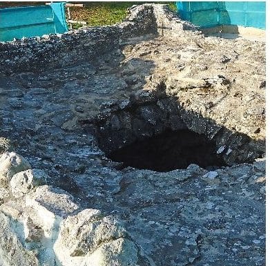 The saplings and weeds on the roof (see Photographs 3 and 4) were sprayed 3 times to kill all such vegetation. Later this dead vegetation was removed and lime mortar applied to residual holes and cracks in the cemented areas of the roof. The work here was more extensive than planned for.