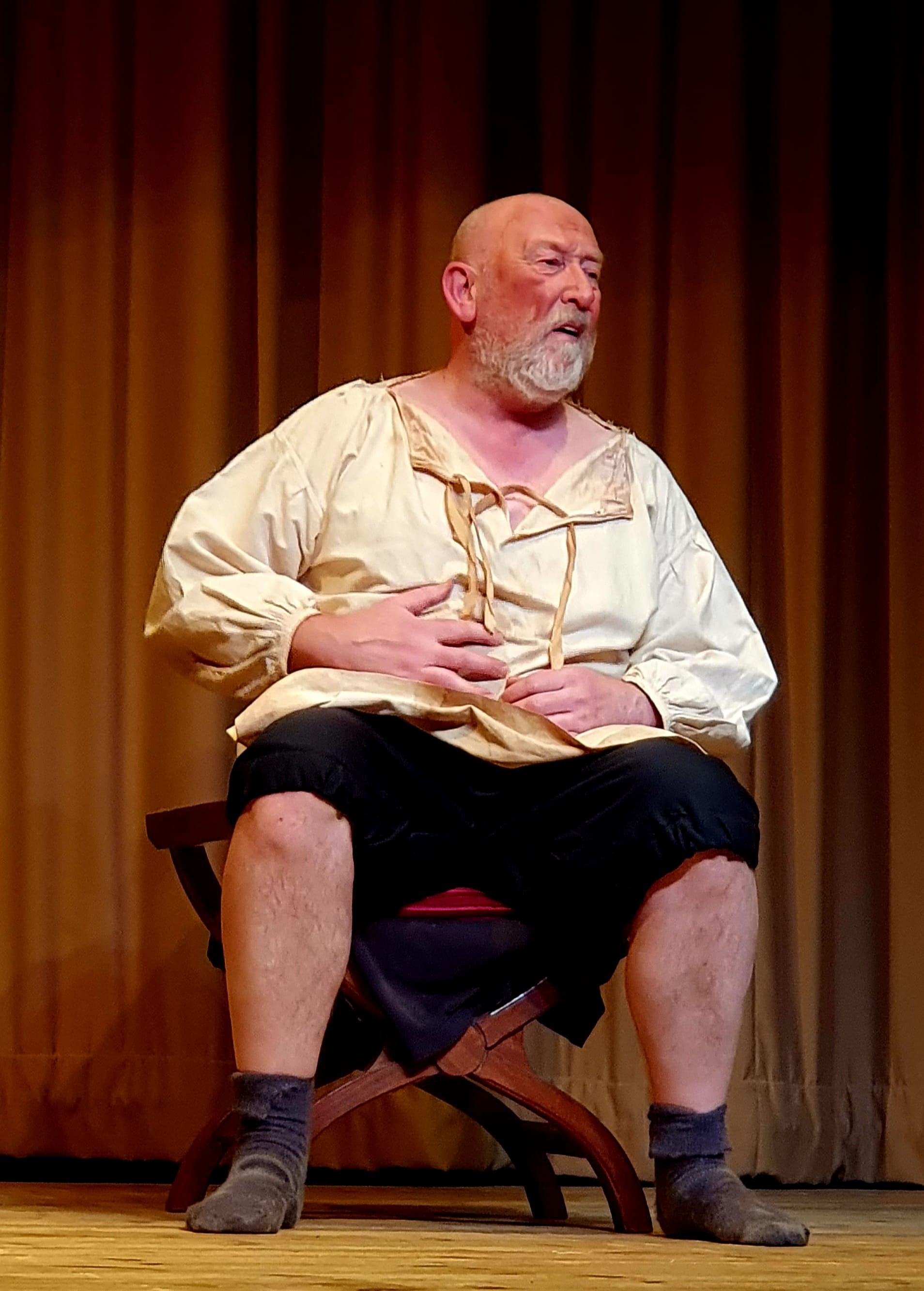 And then life, with all its complexities, moved Mike in another direction. Many years later, through friends, mentors and the turn of the wheel, an opportunity presented itself in the shape of Falstaff. This time, using all of his experiences, he studied, adapted, crafted and moulded himself into a familiar but new version of the anti-hero. Helped, encouraged and prepared by his friend Karl Howman, he was finally ready for his own one man show. And there it was: he was back where he was meant to be, in front of a live audience. 2022 was the year of Mike Stoneham, actor.