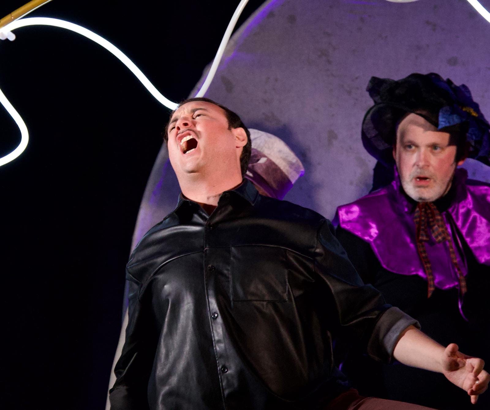 talented soloists and musicians to portray this tragic story with fiery pathos, intense focus and dynamic energy. The singers acted as well as they sung. The musical ensemble of sax, accordion, double base bass, piano and small percussion amply filled the role of a symphony /pit orchestra that would normally accompany this opera. Members of the Marsh Choir provided the chorus with powerful stage presence. The staging reflected