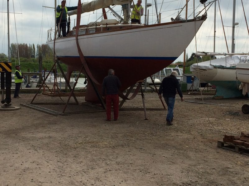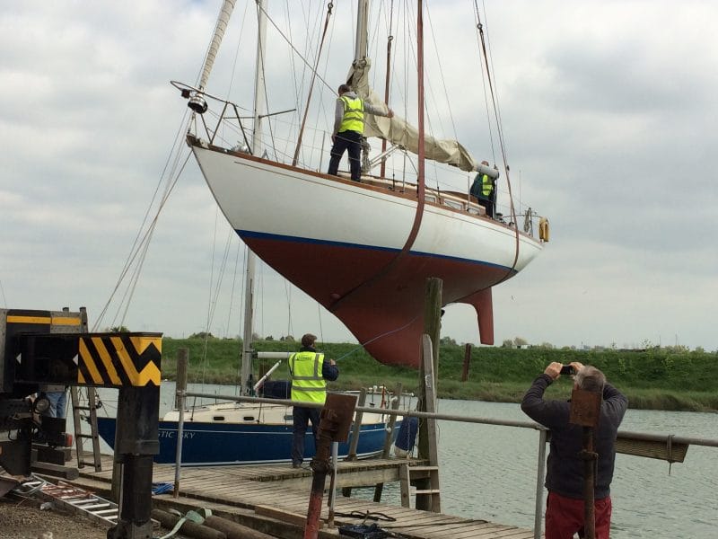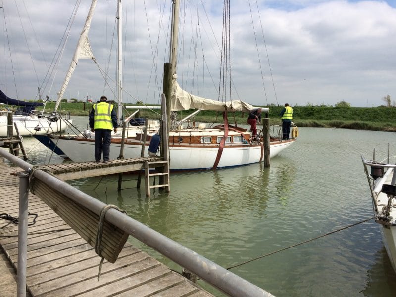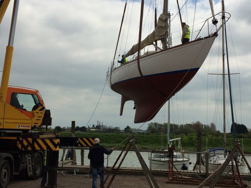 But it is always a nervous moment when an irreplaceable boat like a yacht is gently swaying 15 feet above the ground and so far out of her element.