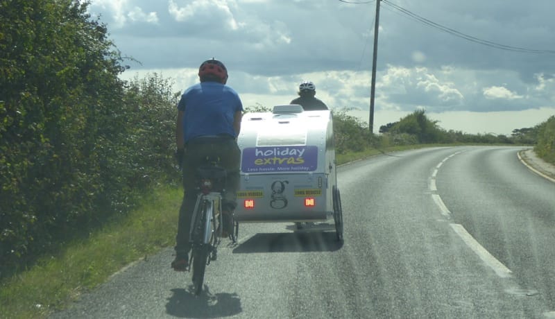 It's a 2,000 mile journey from Rye to Syracuse, the city at the southern end of Sicily, which Simon used to visit on holiday with his parents. 56 year old Simon will be towing a specially constructed Velopod that will be his home for the next two months. The pod has a sleeping room, kitchen and storage space for a loo tent, with solar panels on the roof and kitchen door.