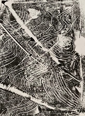 The oldest form of printmaking, woodcut is a relief process in which knives and other tools are used to carve a design into the surface of a wooden block. The raised areas that remain after the block has been cut are inked and printed, while the recessed areas that are cut away do not retain ink, and will remain blank in the final print.