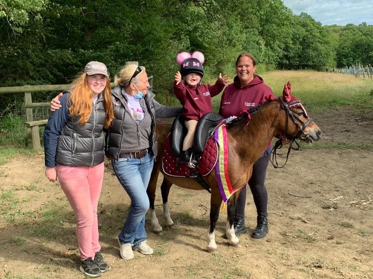 Riders came from far and wide to take part and two-year-old Mabel Forsdick from Sidcup, aboard her pony ‘Peggy’, proved the most successful rider in terms of sponsorship, raising a massive £1,110, no doubt with a little help from her Mum, Jasmine. Mabel wins a hand crafted, personalised carver chair from JMF Design, Rolvenden for her efforts.